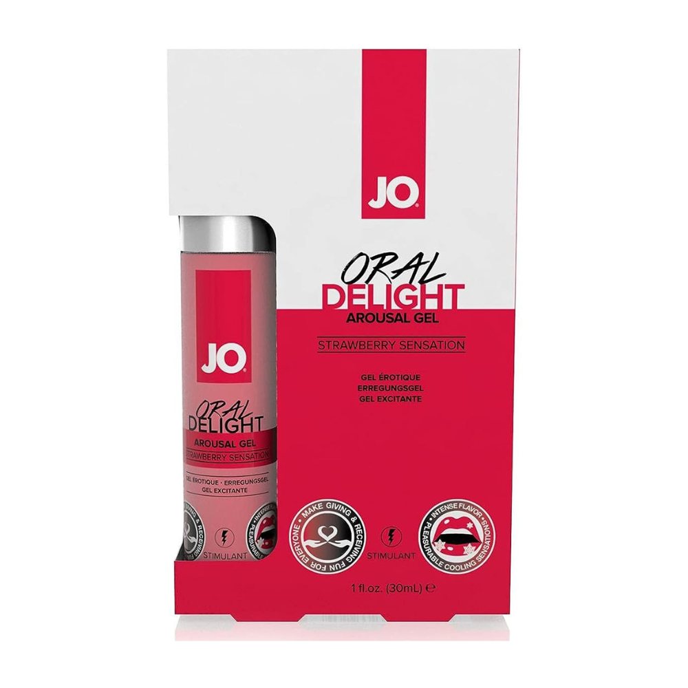 JO® ORAL DELIGHT AROUSAL GEL is a water-based flavored stimulant that makes giving and receiving fun for everyone. The rolling cool thrill comes from a tri-blended menthol source. The thickened gel is also easy to use during foreplay and oral pleasure as it does not drip or run.